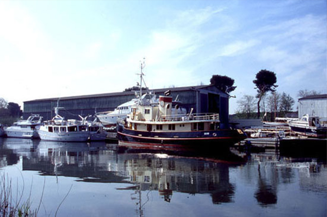 “Entrando nell’ufficio sembra di essere già in barca: perfetto pagliolato come pavimento, cuccette da bordo con tanto di cassetti e maniglie di ottone come divani, oblò come finestre, lumi marinari e foto di antiche barche famose alle pareti. Parliamo di Cantieri Navali del Tevere di Fiumicino. Si trova in via della Scafa al numero 65, due capannoni e qualche ufficio che si affacciano su un piazzale e sul canale. Tutto intorno canneti, verde, silenzio e u gran senso di pace. Il cantiere è nasce nel 1964 e si è sempre occupato di manutenzione e riparazione di barche di legno, con il passare del tempo ha modificato la propria rotta ed è entrato anche nel settore del restauro di vecchie barche.”